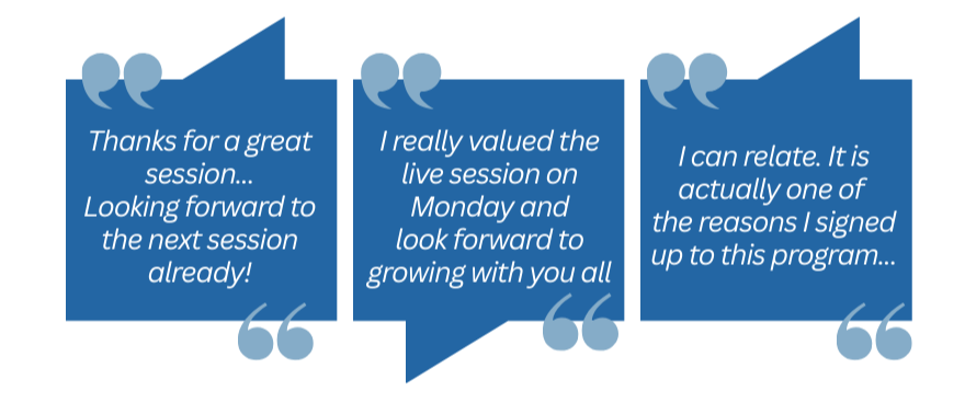 If you have a specific question or challenge, you can submit it through our online form to request that it be addressed in an upcoming weekly call. Additionally, you’re welcome to raise it during live sessions or post it in the private Facebook group for feedback and support from both the community and me. Additional information will be posted in the group resource library to provide resources on hot topics as required.