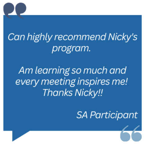 The weekly live sessions are scheduled for Monday evenings. BONUS 1:1 Coaching Sessions are booked directly with Nicky throughout the week.